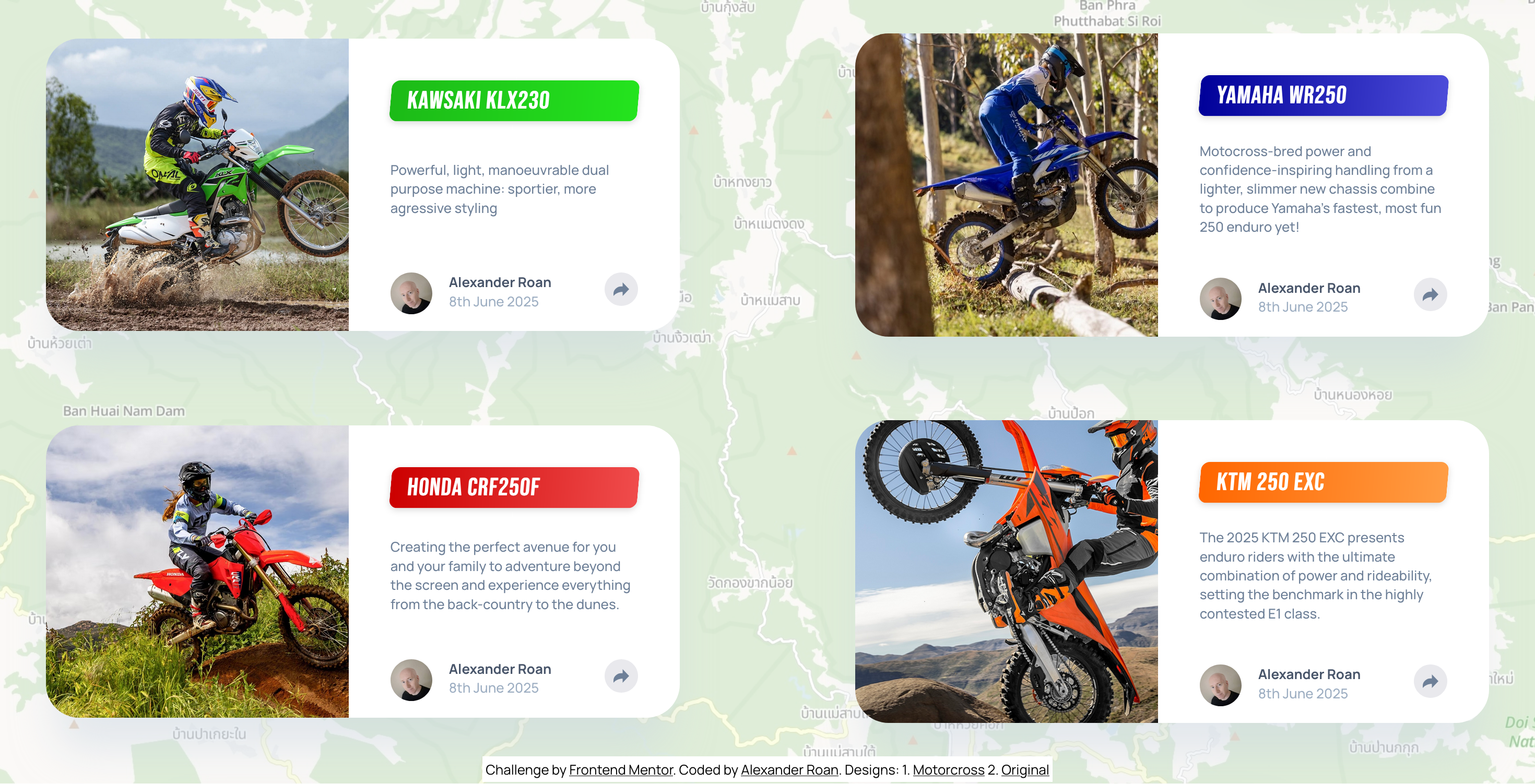 I created a set of 'enduro' themed cards based on a Frontend Mentor challenge.